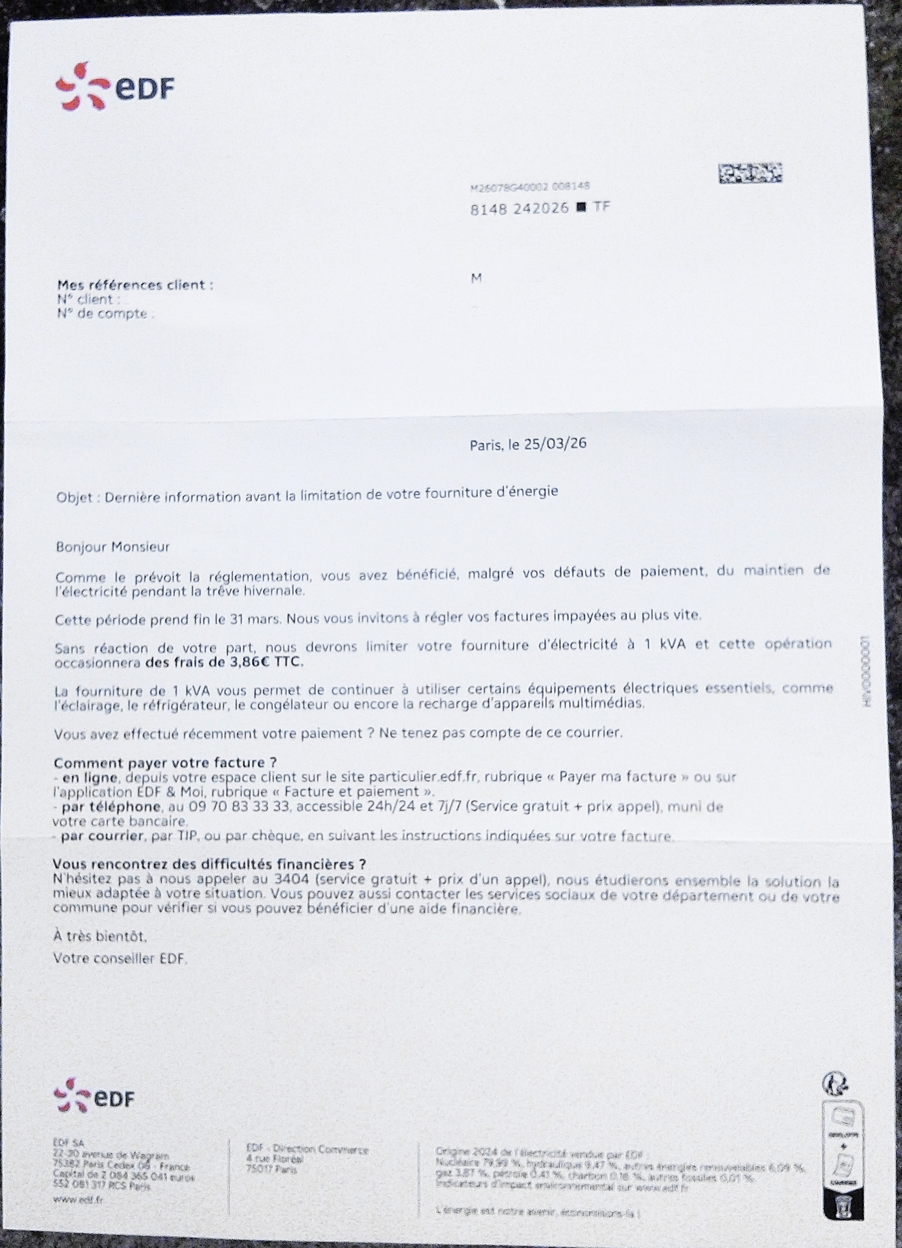 MARS 2026 : EDF PERPÉTUE SON COMPORTEMENT